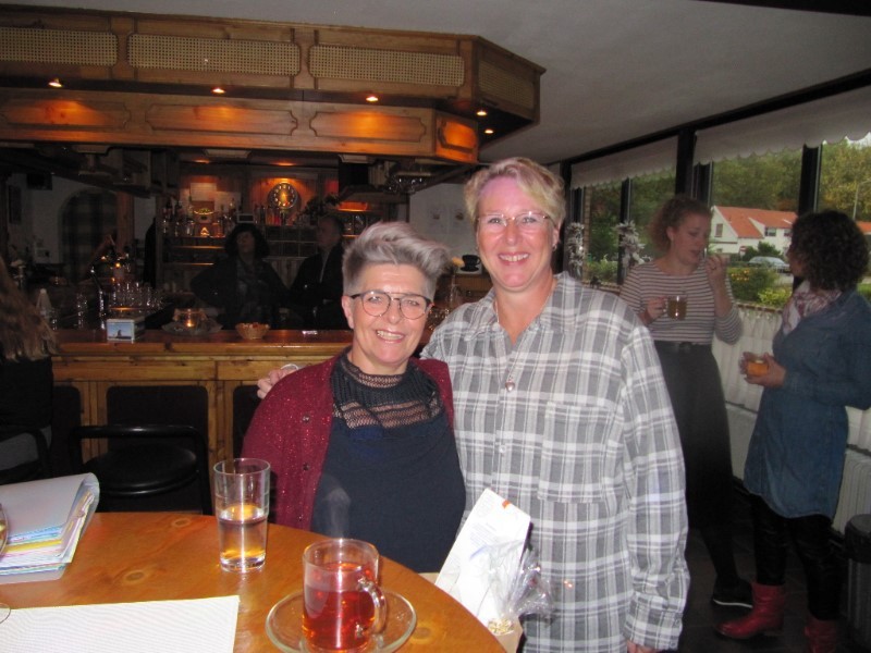 Van de vereniging kregen ze allebei, na een mooie toespraak van de voorzitter, een cadeaubon en bloemen. Fijn dat ook de familie van beiden aanwezig was. We ‘vierden’ het afscheid. We dronken een wijntje en aten een broodje.